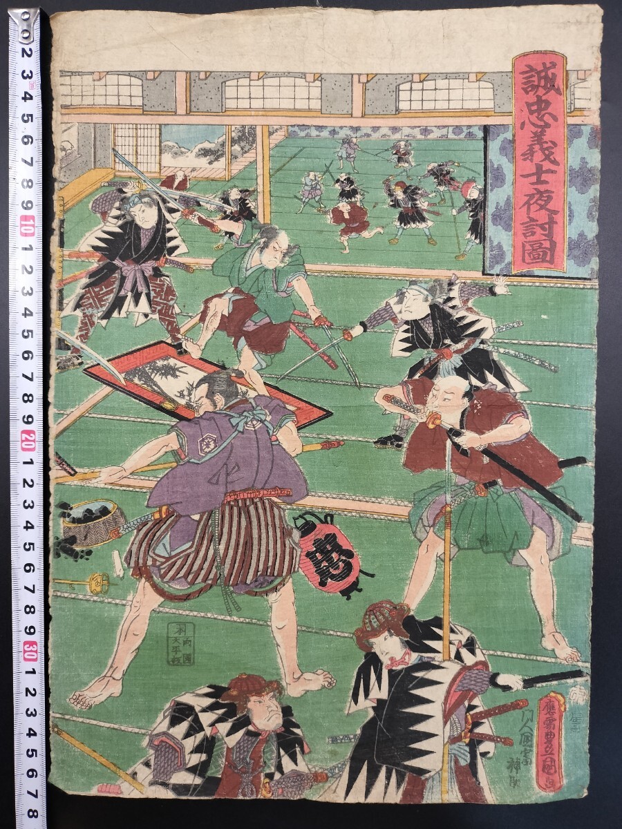 - 江戸期/真作 歌川豊国「誠忠義士夜討図」本物浮世絵木版画 武者絵 錦絵 大判