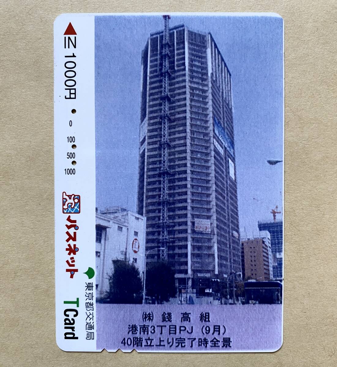 - 【使用済】 パスネット 東京都交通局 港南3丁目PJ(9月) 40階立上り完了時全景 (株)錢高組