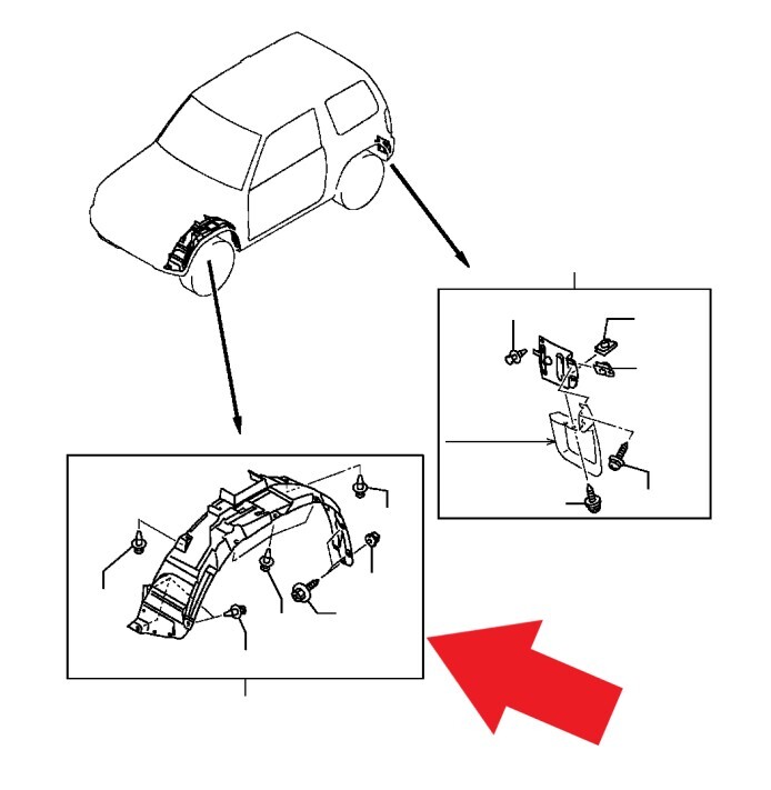- 新品 純正 三菱 ミツビシ パジェロミニ H53 H58 フロント フェンダー インナー スプラッシュシールド 左右セット ライナー 泥よけ B0752-1