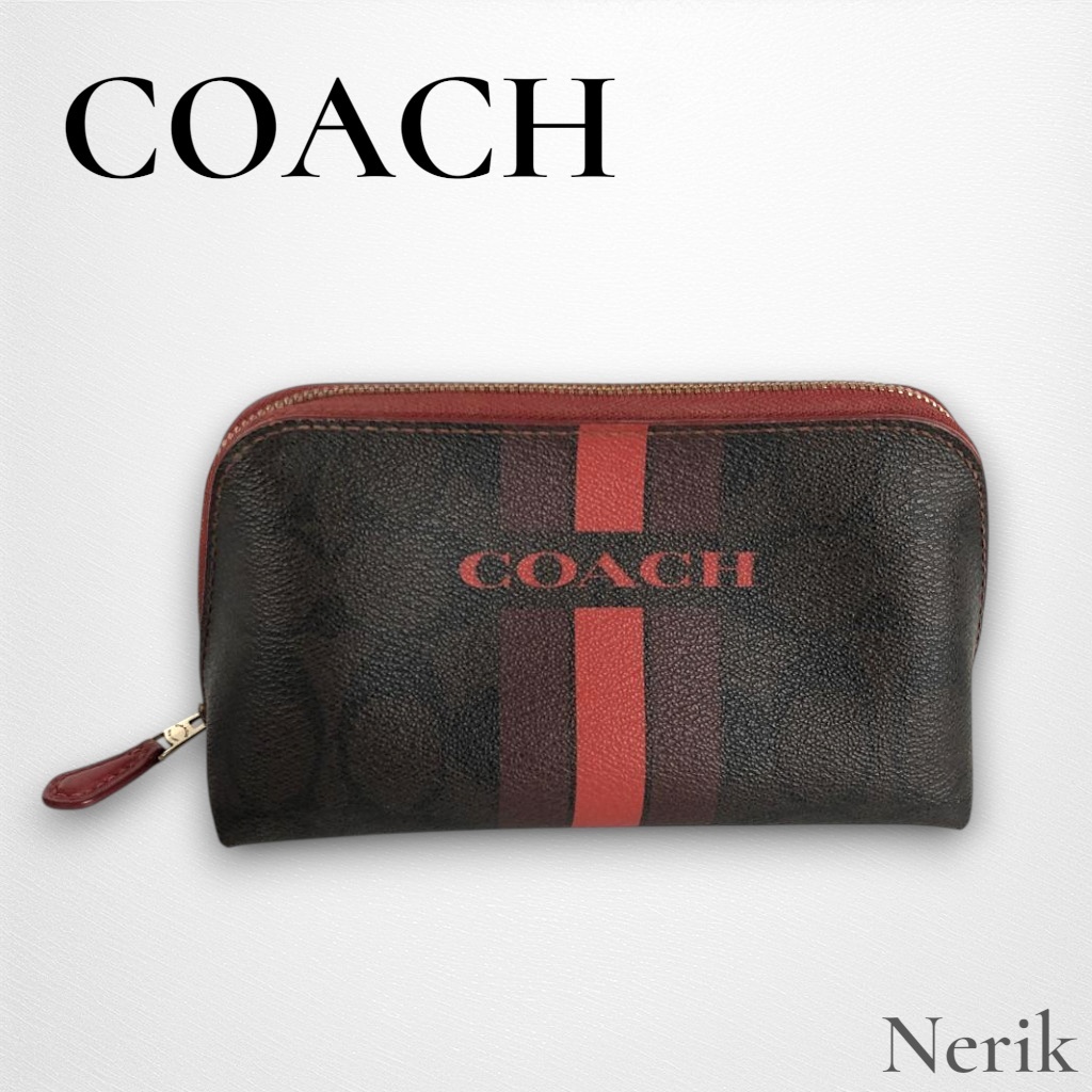 - 人気 COACH コーチ ポーチ 小物入れ ブラウン レッド レディース ブランド 高級 エレガント 送料無料!