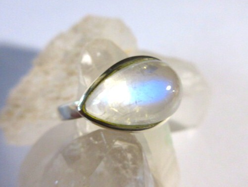 表面にブルーのシラーが出ているムーンストーンです。ほんのりとミルキーな透明感で、柔らかなテリがあります。非加熱。