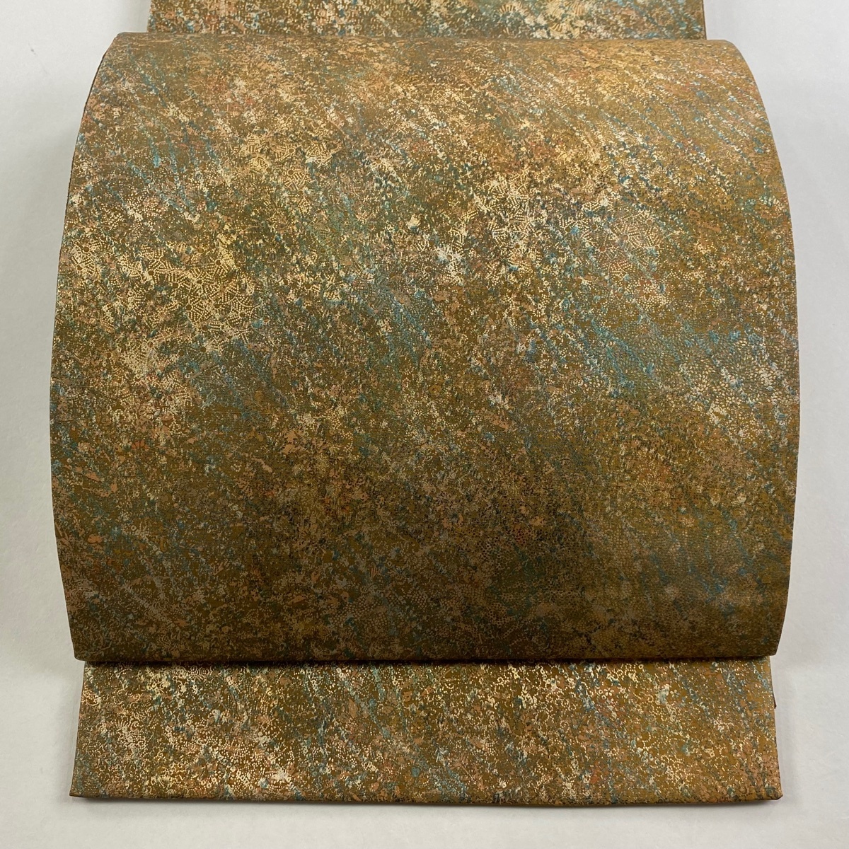 > 袋帯 名品 伊那紬地 江戸小紋柄 幾何学模様 金彩 茶色 全通 正絹 【中古】