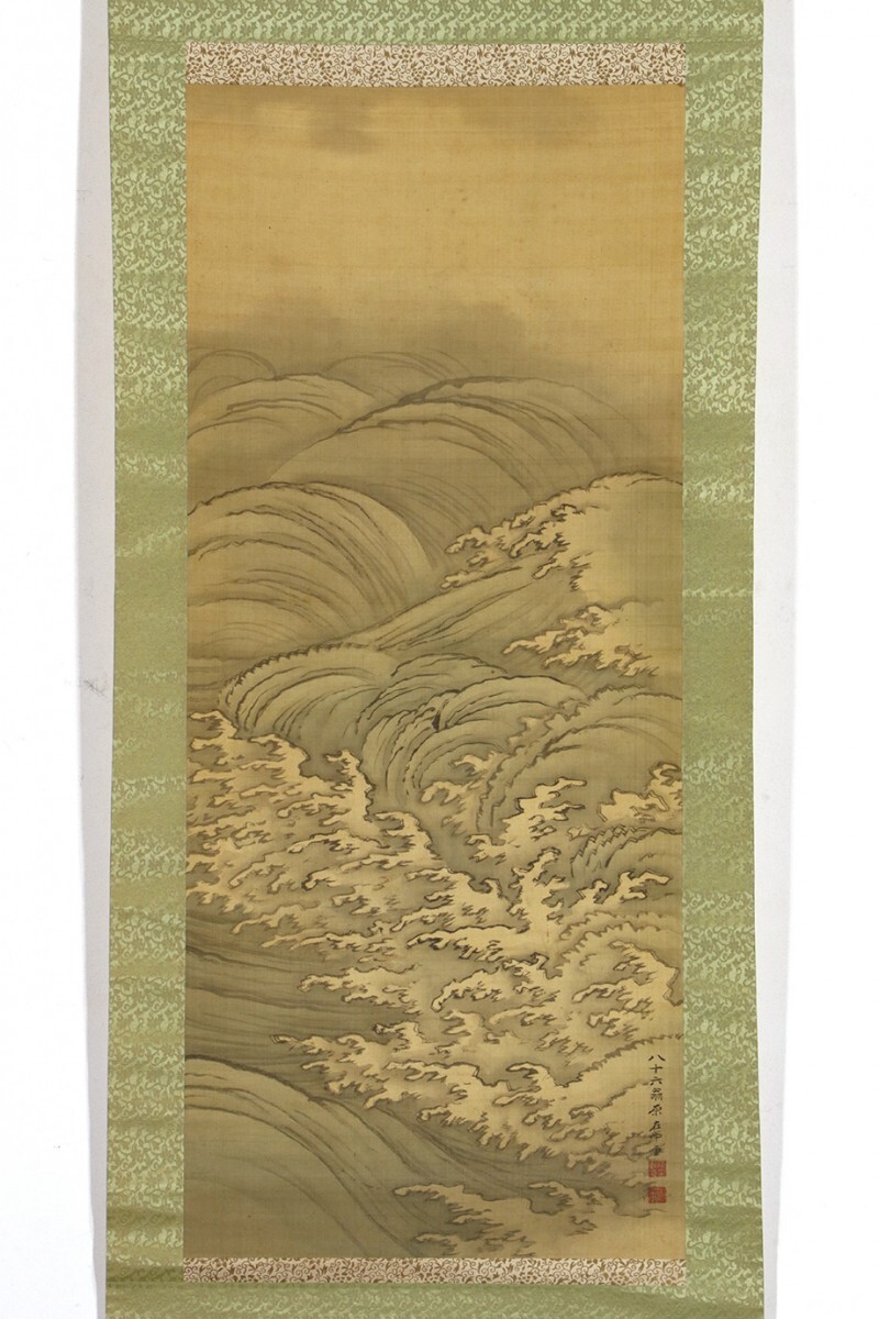 - 【真作 晩年作】掛軸「原在中 怒涛図」天保6年86歳 江戸中後期 原派 石田幽汀・円山応挙門下 絵画