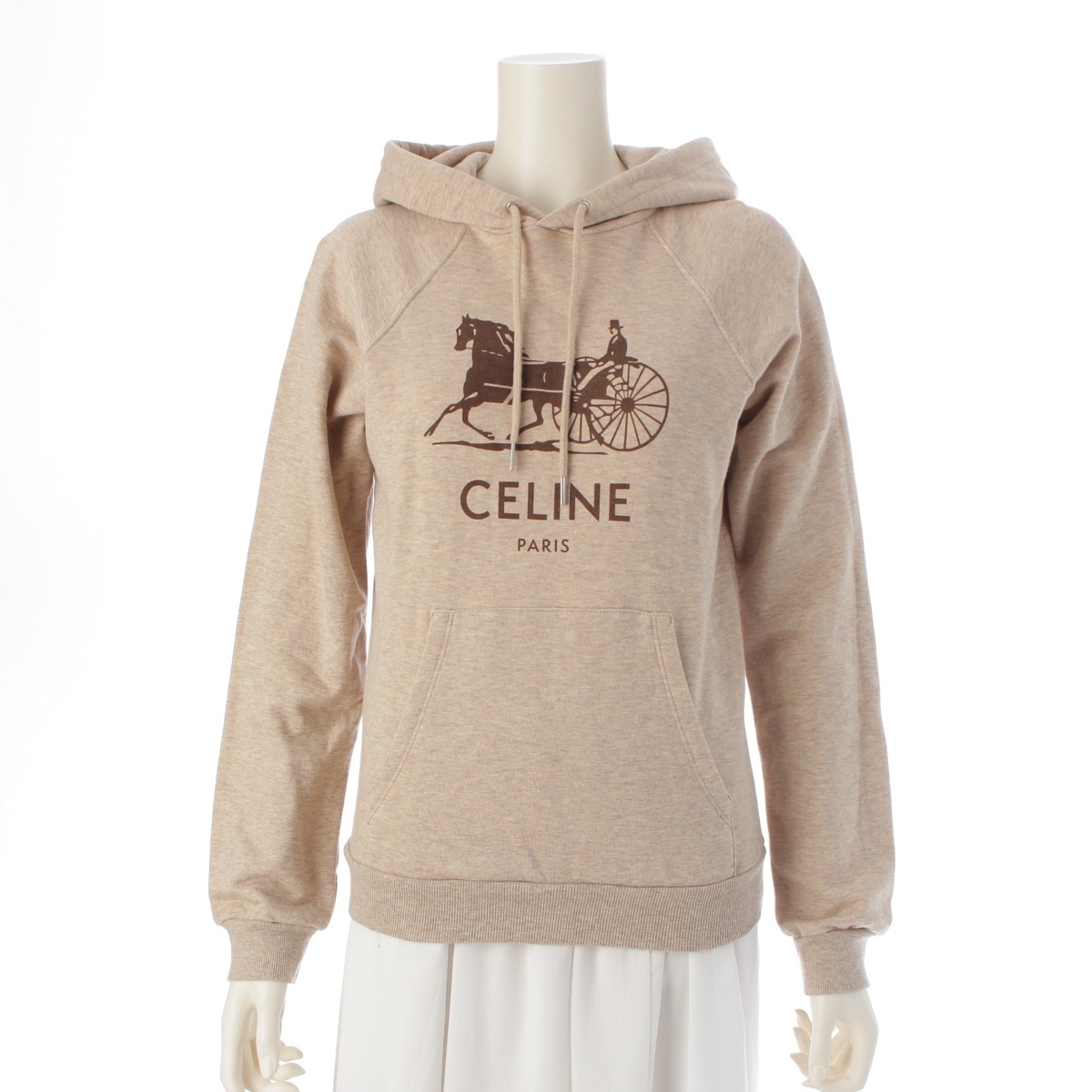 > セリーヌ 21AW カシミヤ×コットン ロゴ プリント 馬車 パーカー 2Y428450I ベージュ XS【中古】