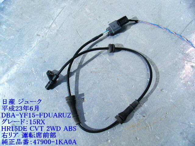 > ◆YF15 日産 ジューク H23年 右リア ABSセンサー スピードセンサー 運転席後部 47900-1KA0A 純正 [14195]