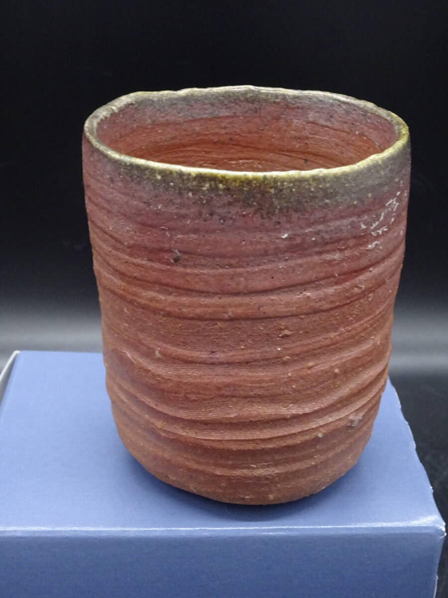> 備前焼 人気実力作家 前嶋五一郎(巨匠原田拾六の義兄)日本伝統工芸士★備前フリーカップ 紙箱、陶歴付 酒器 茶碗 壺 茶道具