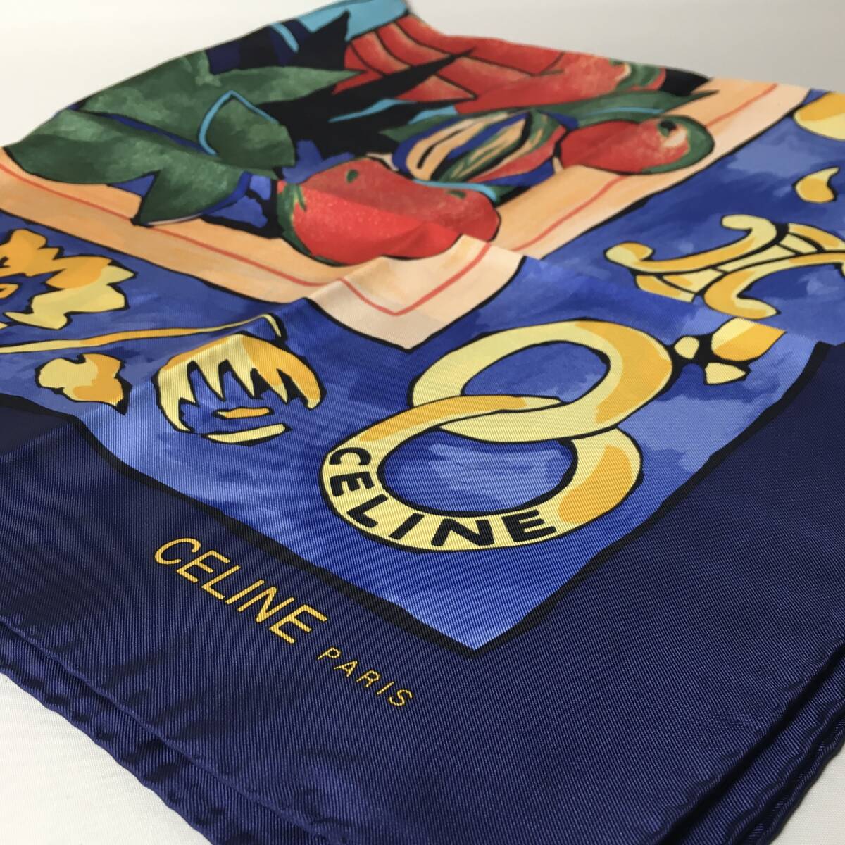 - 78B298|美品|セリーヌ スカーフ ネイビー トリオンフ タグあり