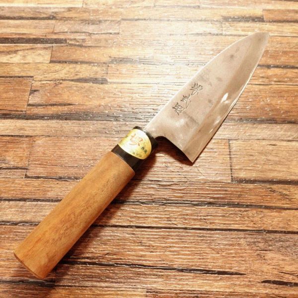 - 源武昭 相出刃包丁 研ぎ済 シール付き ハガネ 155mm