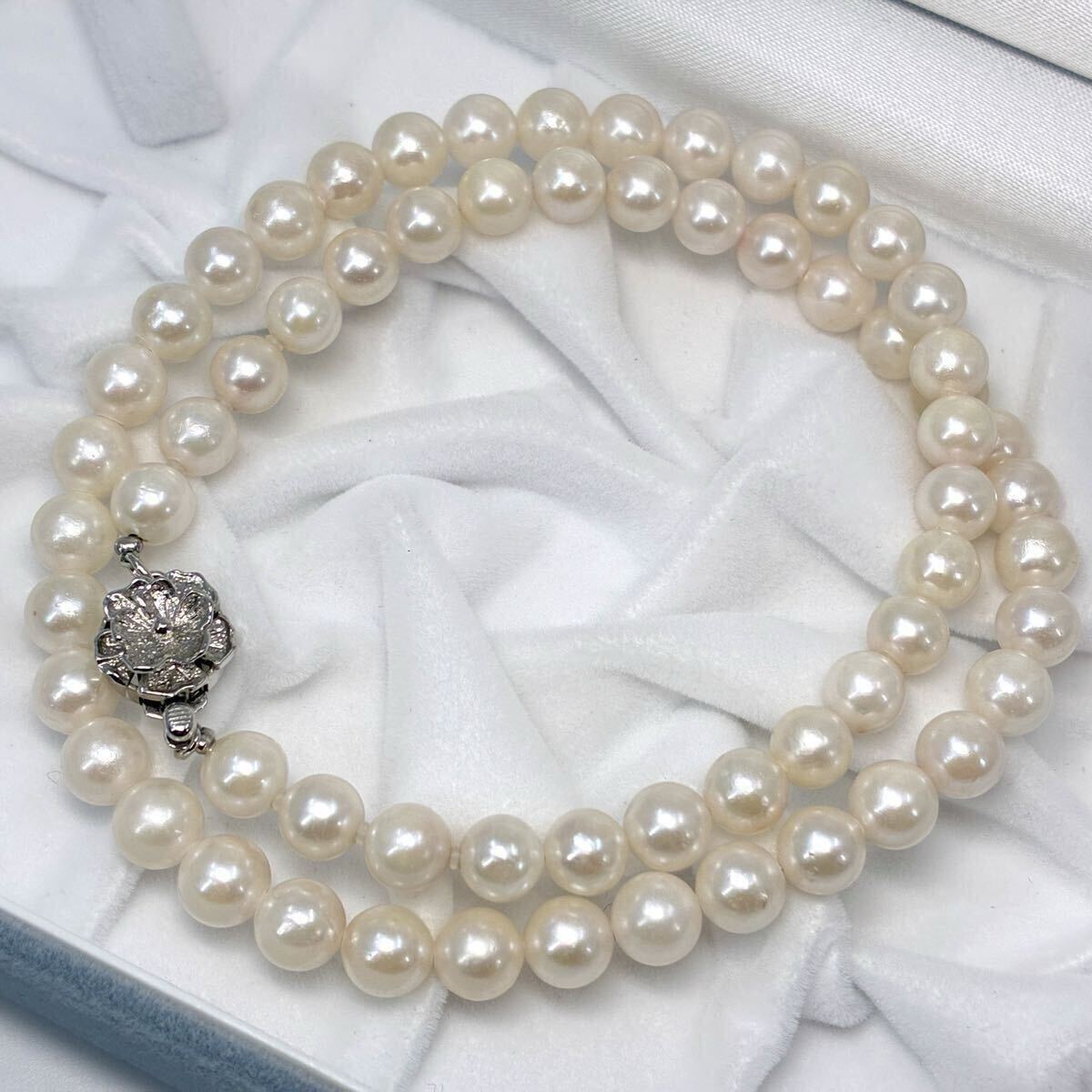 - 【照り強】アコヤ真珠 本真珠 あこや パール ネックレス ジュエリー 6.5〜6.9mm 全長44cm 30.0g akoya pearl jewely necklace SILVER刻印