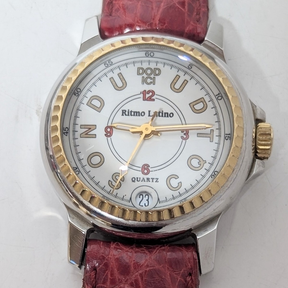 - Ritmo Latino QUARTZ リトモラティーノ クオーツ ゴールドシルバーコンビカラー ドーム型 アイボリー文字盤 デイト 電池交換済み 稼働品