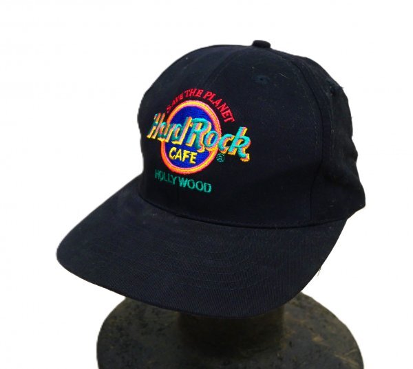 - ヴィンテージ・Hard Rock Cafe ハードロックカフェ HOLLY WOOD ★ キャップ・帽子・野球帽・現地購入 ★ ブラック・ロゴ刺しゅう入り