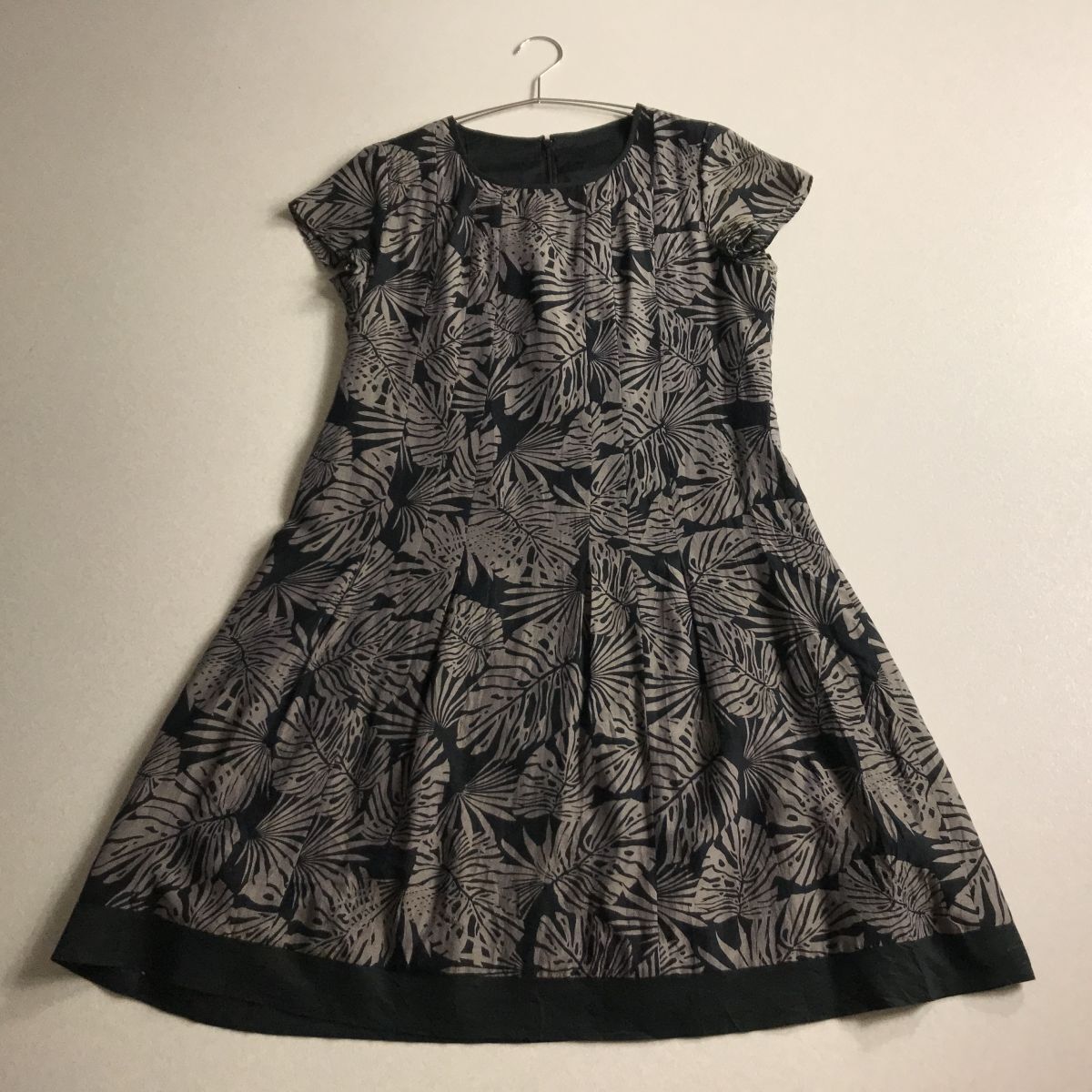 - ☆ UNDICI NOVE ウンディッチノーベ シルクブレンド リーフデザイン ワンピース 大きいサイズ 44