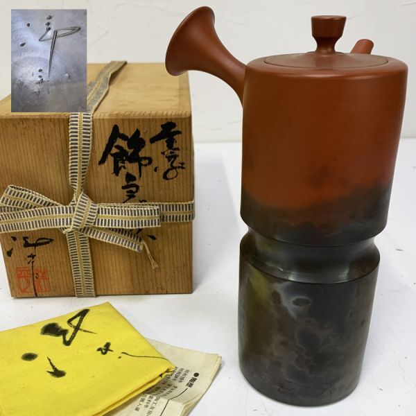 - 常滑名工 小西洋平 常滑焼 窯変朱泥横手急須 飾り急須 共箱 茶注 煎茶道具 煎茶器 飾急須