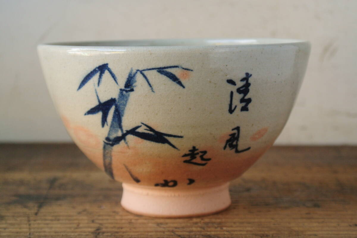 堀内宗完 (兼中斎) 自画 阿漕窯 竹絵御本茶碗 箱付 真作保証です。