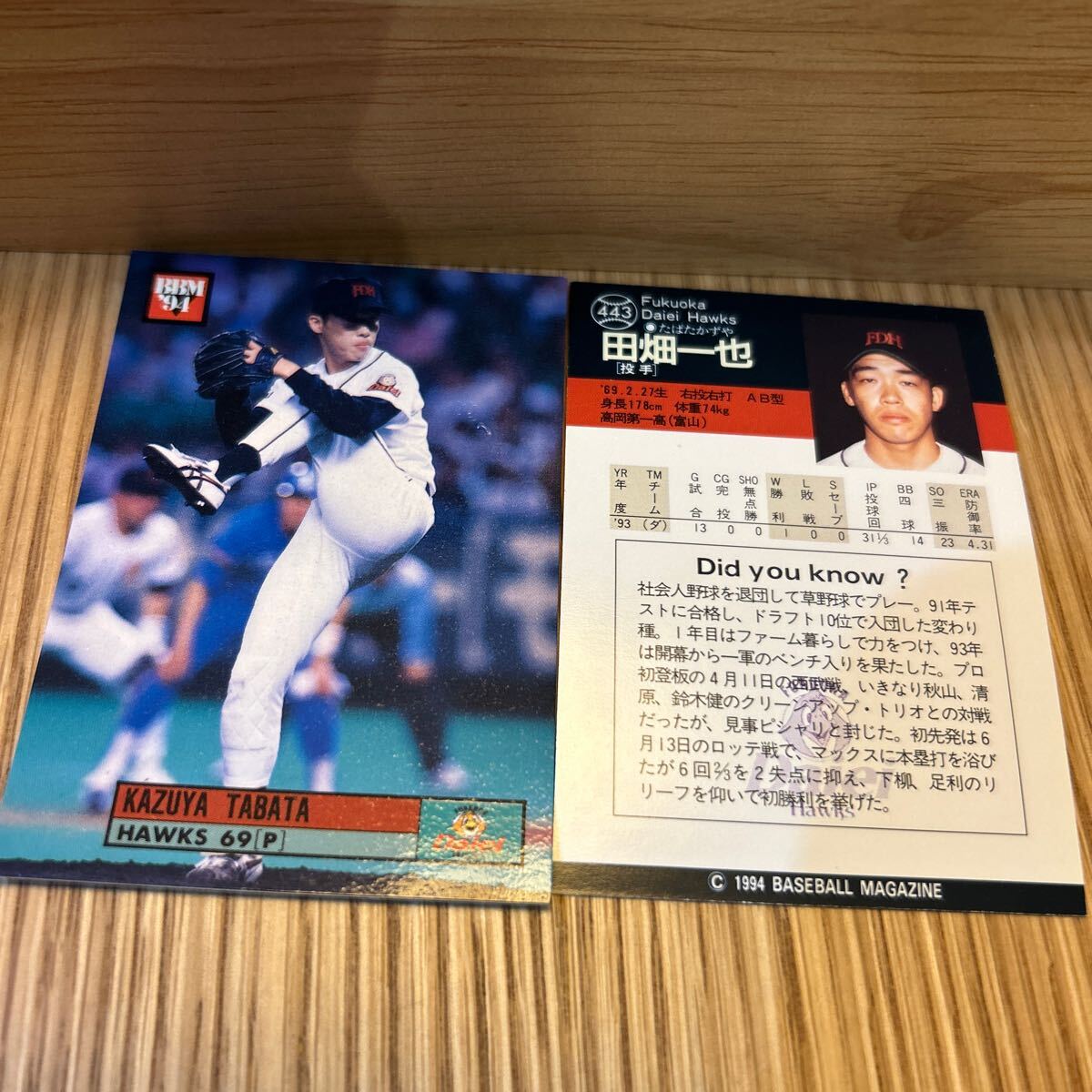 > 1994BBM 443 田畑一也 ダイエー