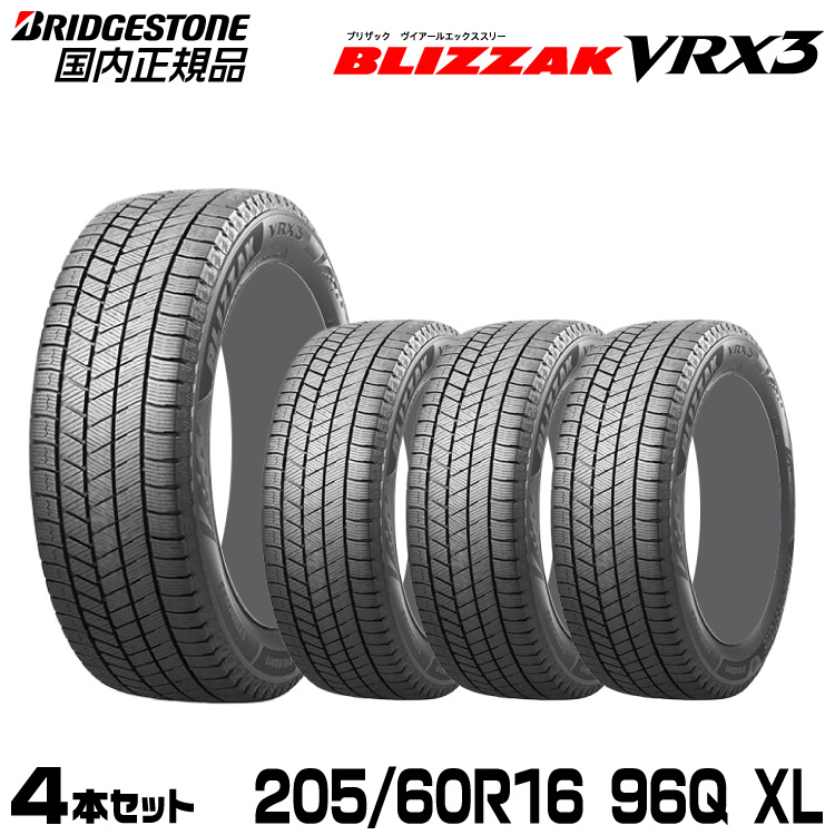 - 2024年製【新品/国内正規品】ブリヂストン スタッドレスタイヤ BLIZZAK VRX3 205/60R16 96Q XL 4本セット 取付店/個人宅配送可 ブリザック