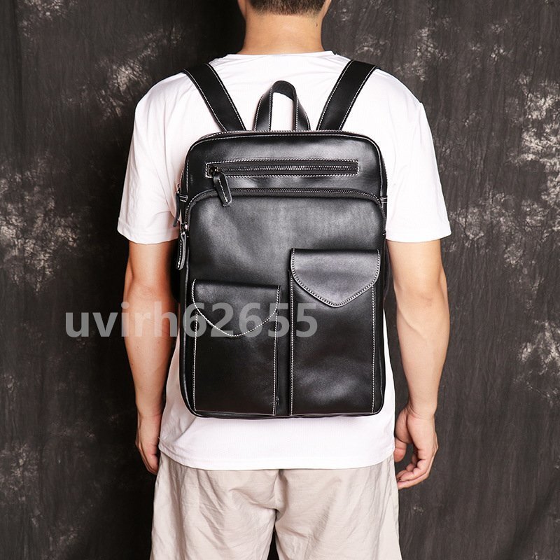 - 人気推薦 メンズ 本革 牛革 PC収納 A4 レザー 大容量 多機能 リュックサック バックパック ビジネスリュック 通勤通学 出張 旅行 ブラック