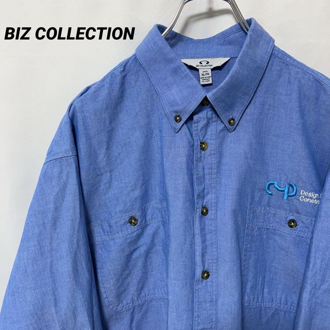 - N-5706 BIZ COLLECTION アメリカ古着 ワークシャツ ボタンダウンシャツ 長袖 企業ロゴ 刺繍 XL メンズ