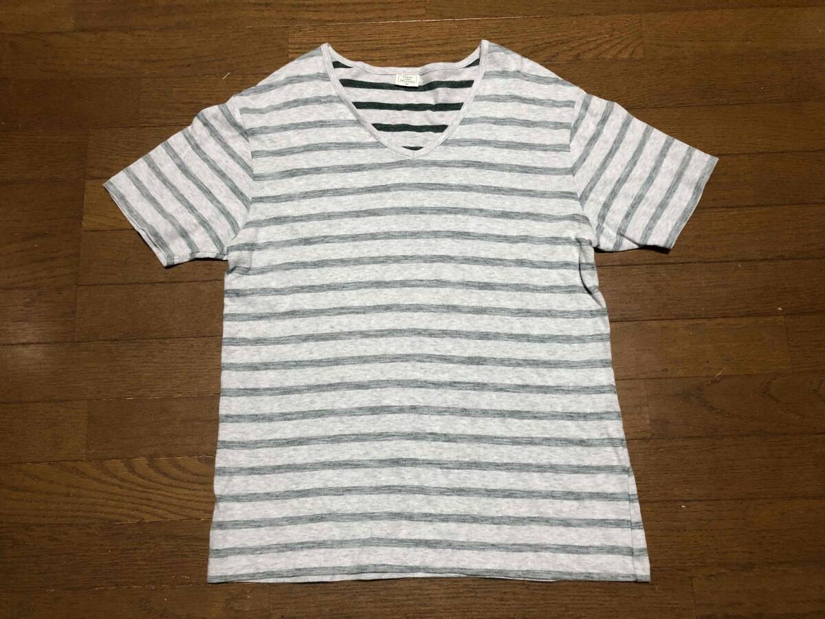> ★即決★GREEN LABEL グリーンレーベルリラクシング★半袖VネックTシャツ★XLサイズ★グレー×グリーンボーダー★UA★送料230円★