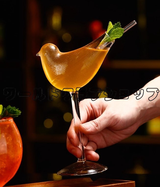 - 【個性派ガラスカップ】バー用吊り下げ型ドリンクカップ 不規則形×耐熱透明ガラス カクテルグラス 150ml【小鳥型グラス】