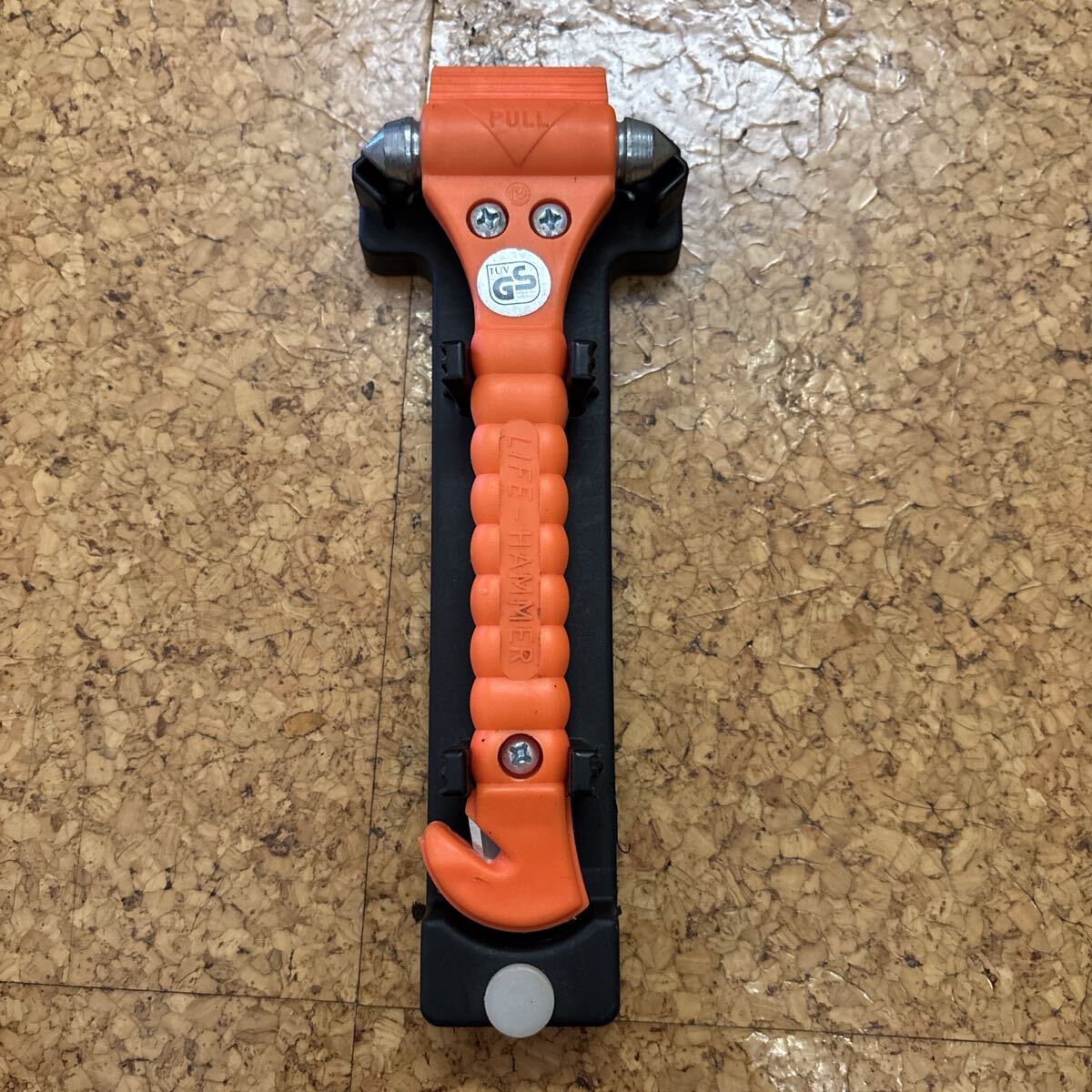 - オレンジ フック付き 車両用安全器具 中古品 車に一ついかがですか♪ レスキューハンマー 緊急脱出用ハンマー 緊急ハンマー