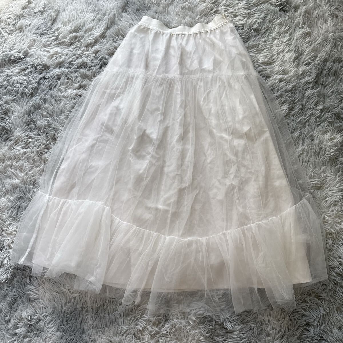 - GRL チュールティアードロングスカートオフ白F☆美品45