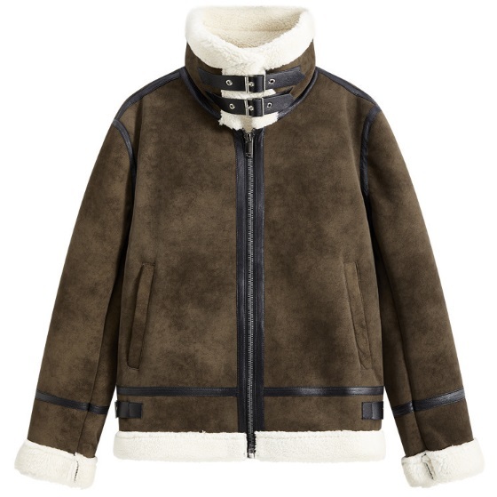 - 新作 ライダースジャケット 皮毛一体 メンズ ブルゾン ファーアウター バイクウエア 防寒防風 コーヒー/L