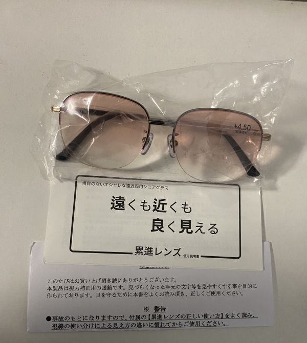 - ZB92-10 4.5度 遠中近 シニアグラス ハーフブラウン 遠近対応 調光 遠近両用メガネ 眼鏡 プラス4.5 日本製 6050円