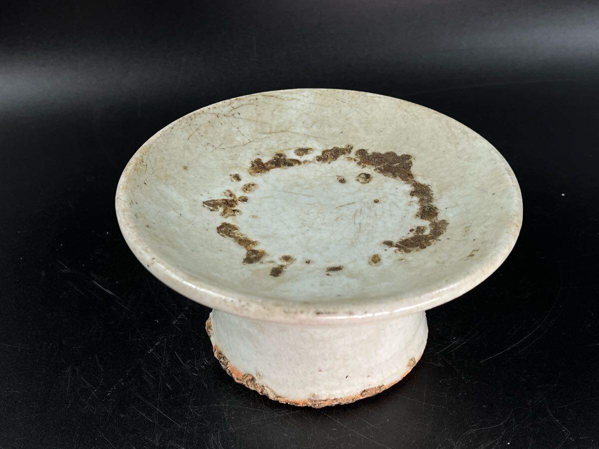 - 本物 李朝 高台皿 白磁 朝鮮古美術 骨董品 時代古作【博圓】高6.3cm