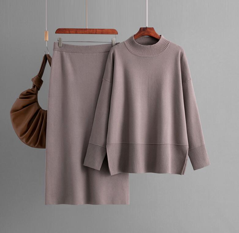 - 346 スカートスーツladiesレディース ◇ 秋冬 上質 暖かい◇ ニット素材 2点セット キャメル