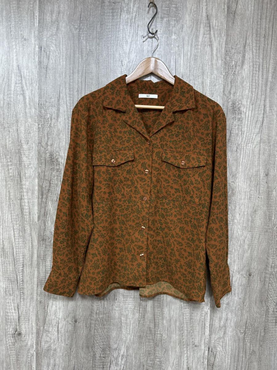 > ネコポスOK SLY スライ アンティーク レトロ 長袖 花柄 総柄 シャツ sizeF/茶 ◆■ レディース