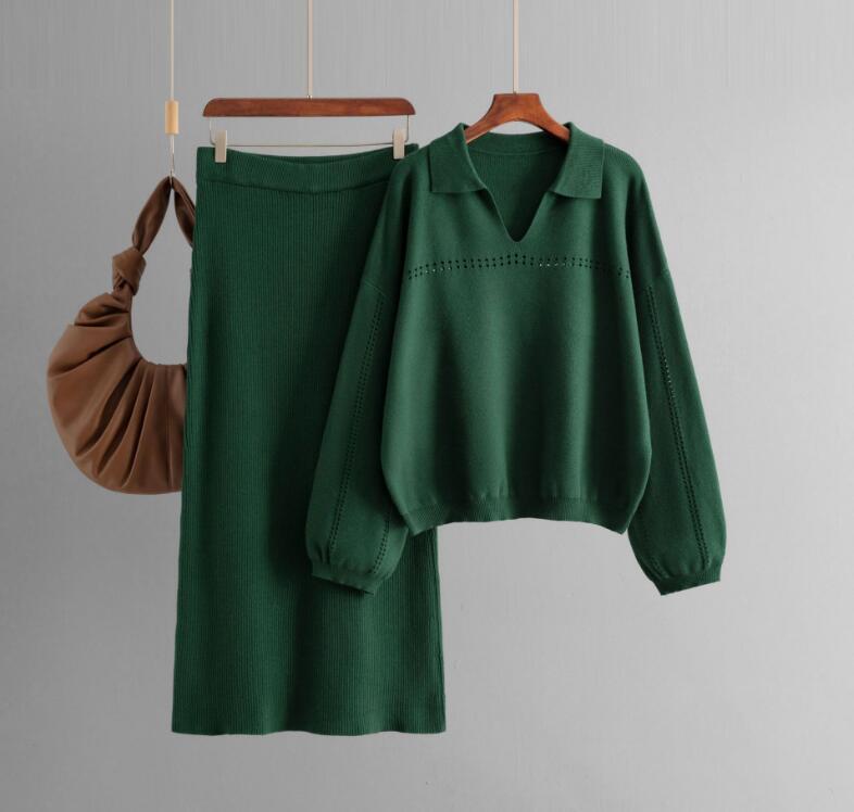 - 346 スカートスーツladiesレディース ◇ 秋冬 上質 ◇ 暖かい 厚手 ニット素材 グリーン