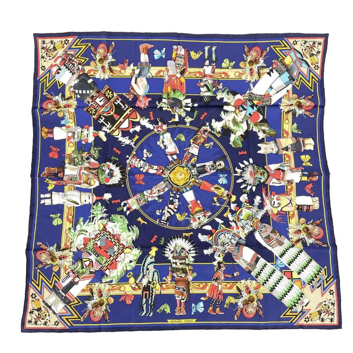 > 美品◆HERMES エルメス スカーフ/カレ90/kachinas(カチナ) シルク100% マルチカラー レディース