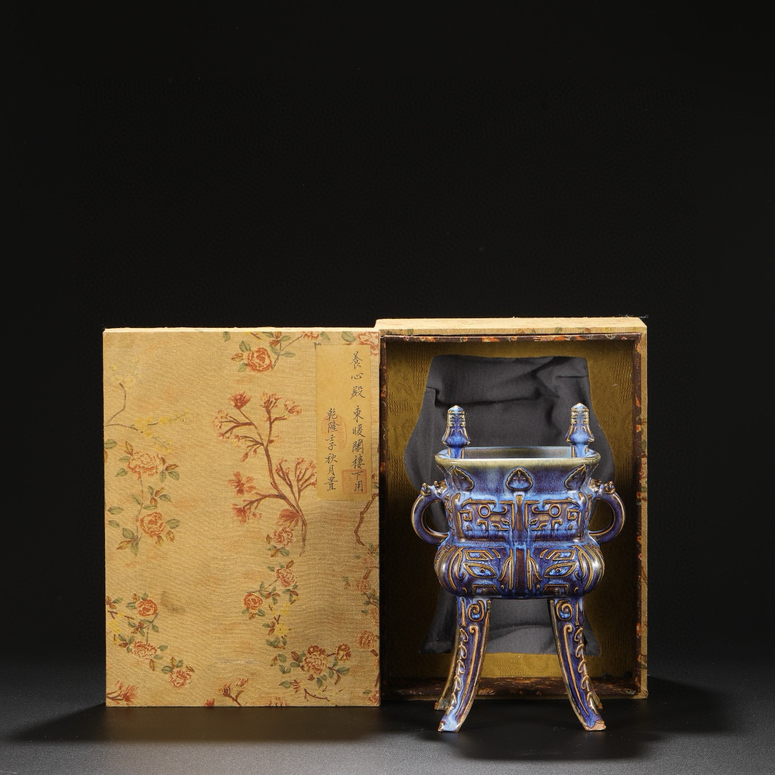 - 『三希堂』 中国骨董 北宋 鈞窯葡萄紫紅釉宮廷御用鼎式炉「養心殿」 古陶磁 高さ27.5cm 口径14cm 直径18.5cm C29