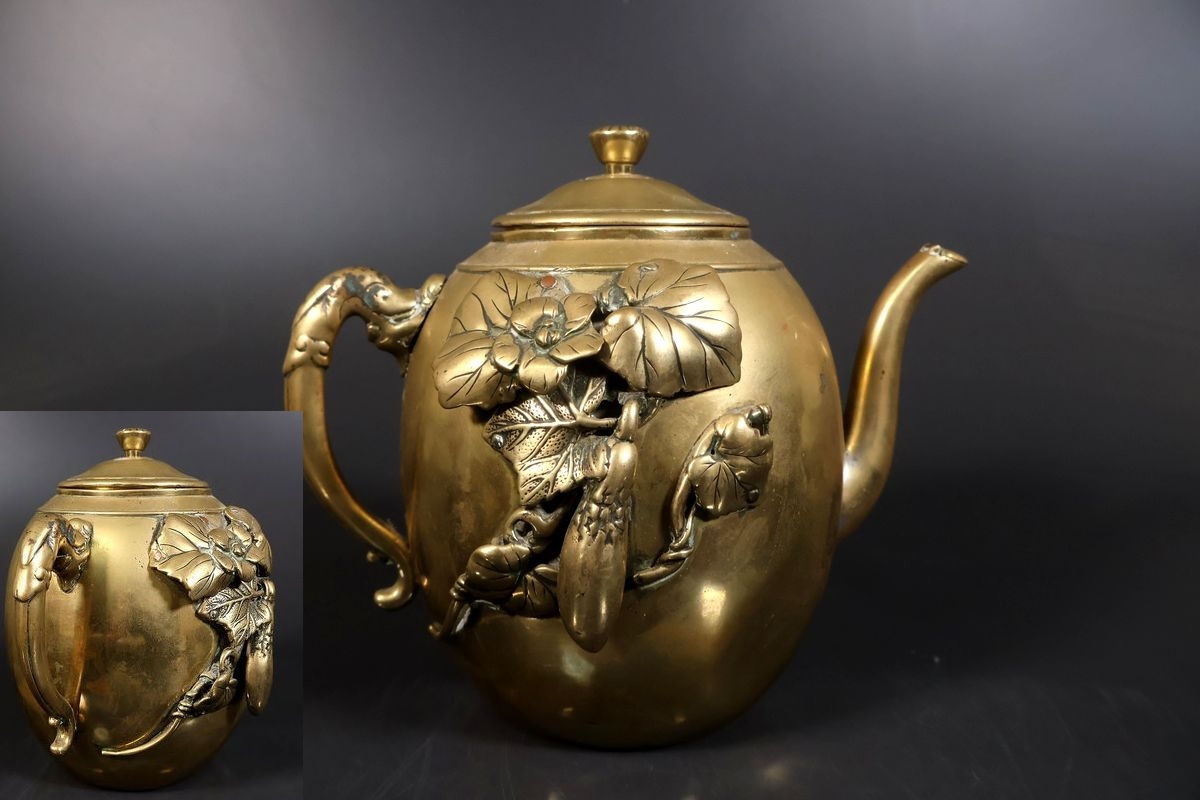 - 【小】5313 時代古銅 立体糸瓜文水注 銅器 里帰り銅器 茶道具 ティーポット 銅瓶