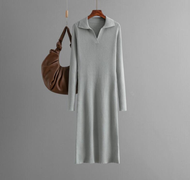 - 346 ワンピースladiesレディース ◇ 秋冬 上質 ◇ 暖かい 厚手 ニット素材 グレー