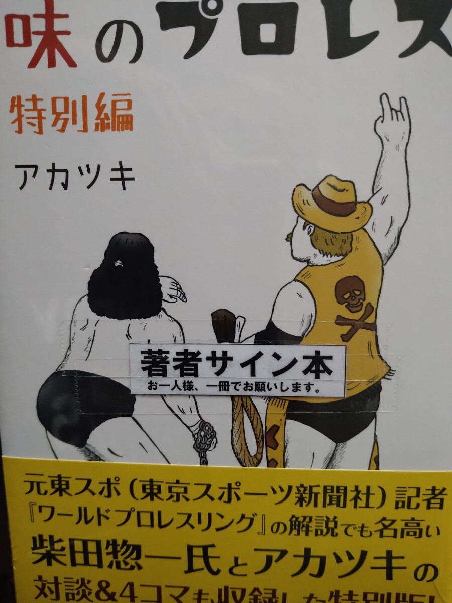 - アカツキ 直筆サイン本 味のプロレス 特別編 新品、未開封、シールド 新紀元社 帯付 4コママンガ