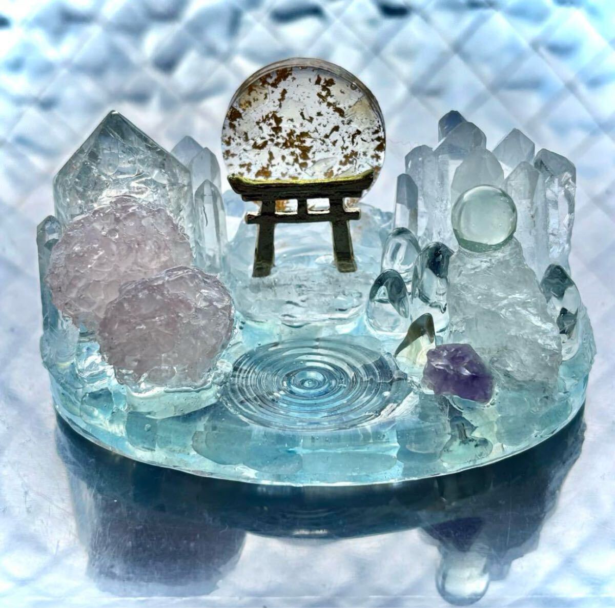 - ◇桜咲く湖畔◇鳥居◇神社◇オルゴナイト◇アクアマリン◇ローズクォーツ◇シトリン◇アメジスト◇水晶◇水紋◇