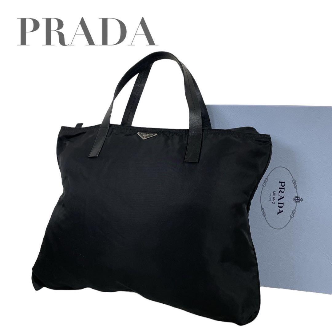 - 希少 プラダ トートバッグ 三角ロゴ ナイロン 黒 大容量 肩掛け 5102