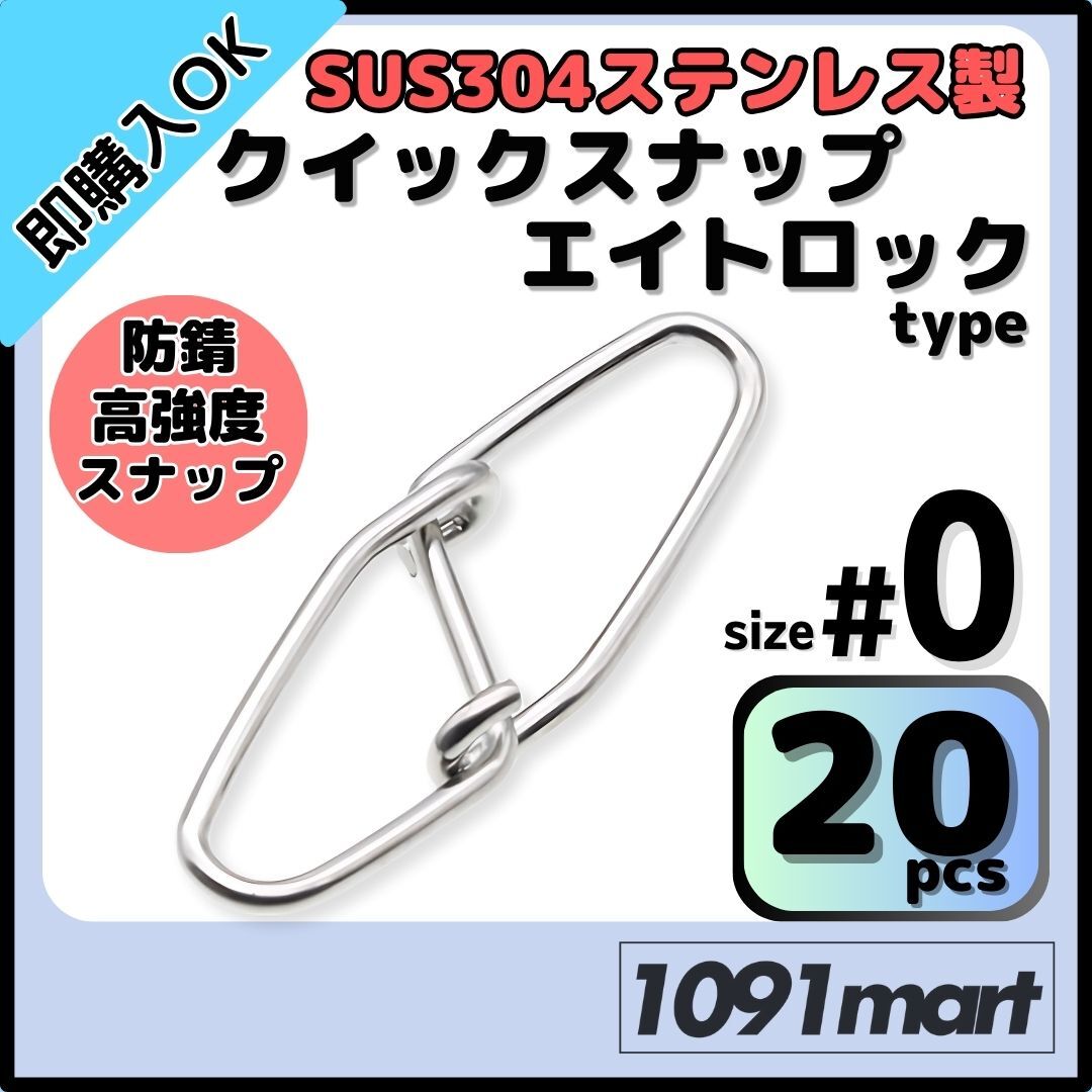 > SUS304 ステンレス製 強力クイックスナップ エイトロックタイプ #0 20個セット 両開き ルアー 仕掛けに! 防錆 スナップ【ミニレター】