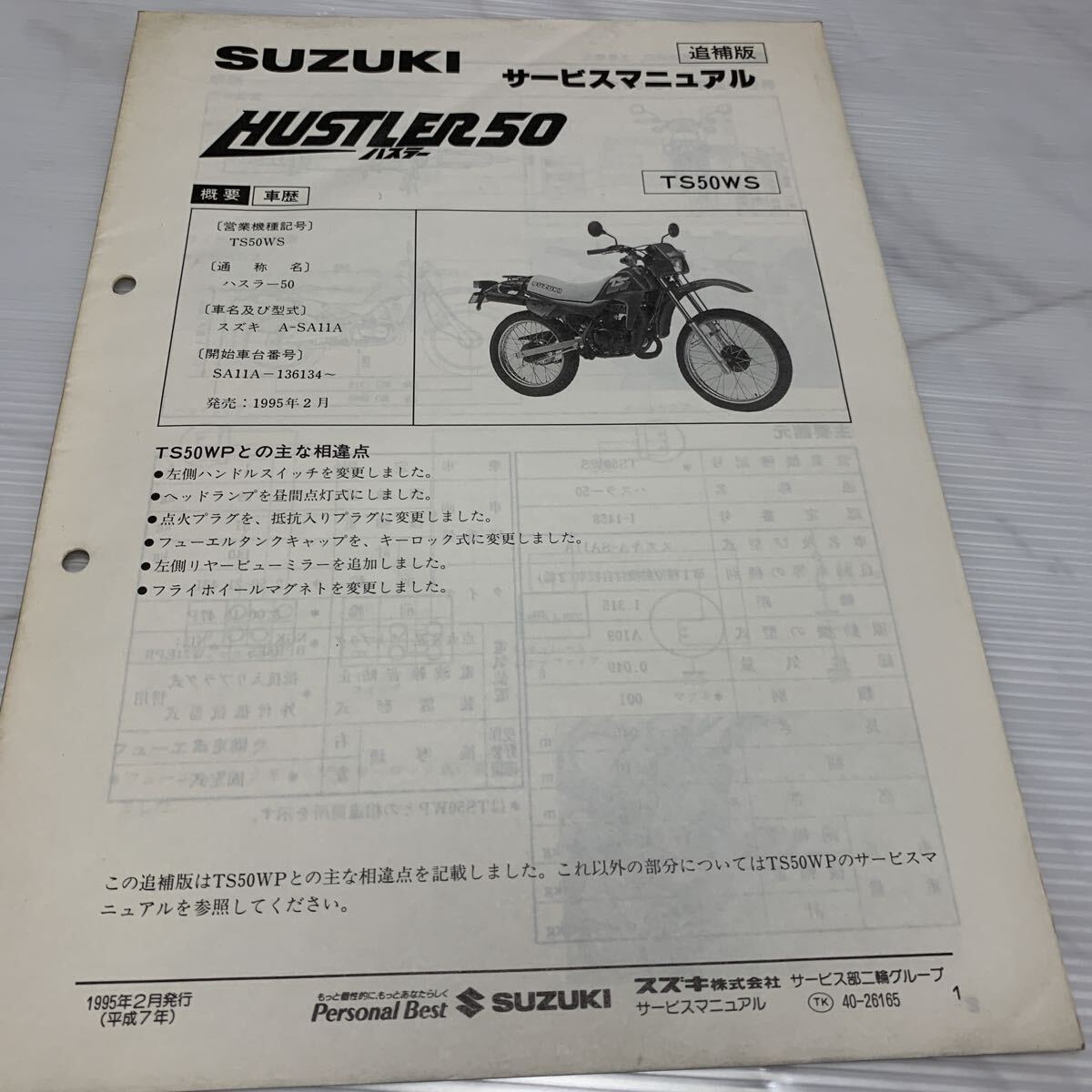 - ■ 送料無料 ■ SUZUKI スズキ サービスマニュアル ハスラー 50 HUSTLER TS50WS SA11A 追補版 鈴木 ■