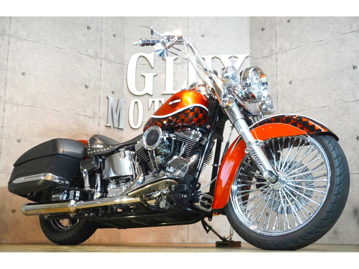 > ハーレーFLSTCヘリテイジソフテイル 200台限定カラー 独立管 21インチ極太スポーク ソロシート サドルバック ETC