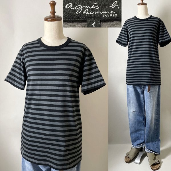 > 美品【国内正規品 名作 定価14,300円程 定番】日本製 agnes b. homme 8807J008 E20 アニエスベー オム J008 TS 細ボーダー Tシャツ 1 半袖
