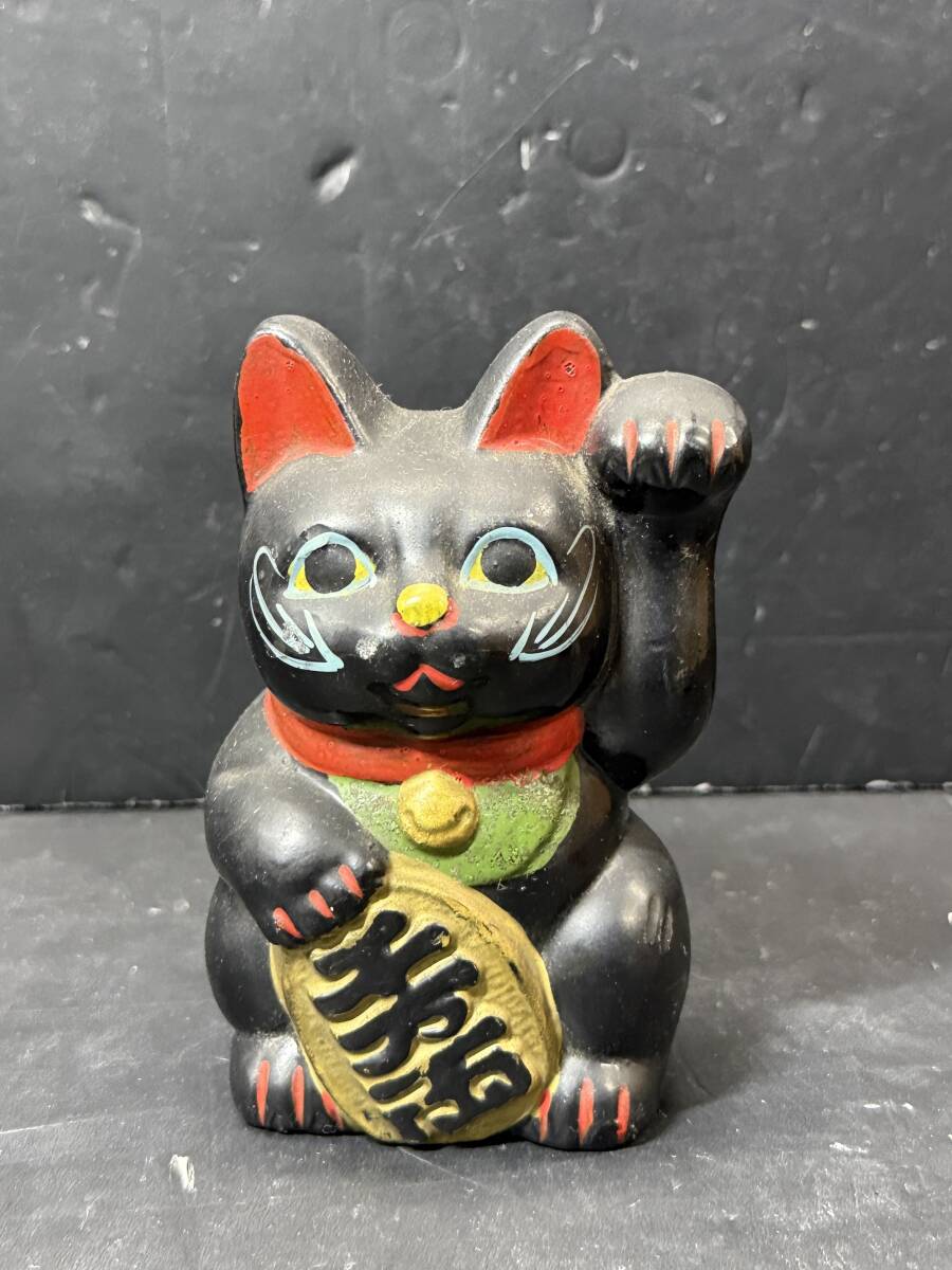 > ★コレクター必見 まねきねこ 黒猫 招き猫 左手上げ 貯金箱 招福 かわいい コインバンク インテリア 置物 ディスプレイ 現状品 GT422