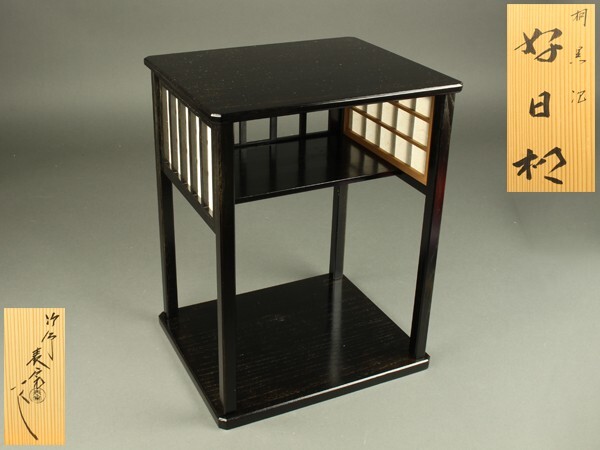 - 【宇】1956 塗師 川瀬表完作 桐黒塗 好日棚 組立式 共箱 茶道具