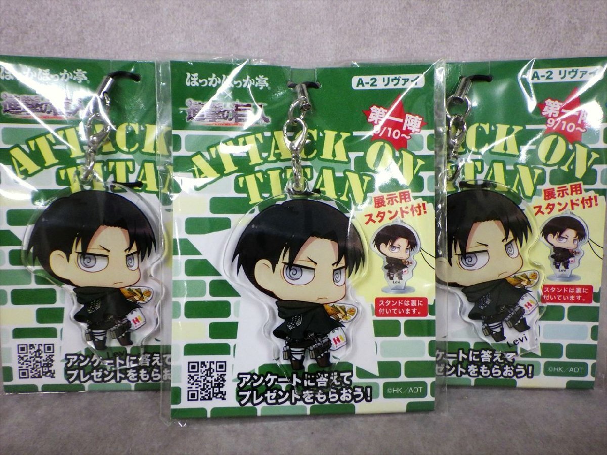 - e13 送料無料 袋未開封 非売品 ほっかほっか亭 × 進撃の巨人 リヴァイ アクリル ストラップ スタンド付 3個まとめて 未使用