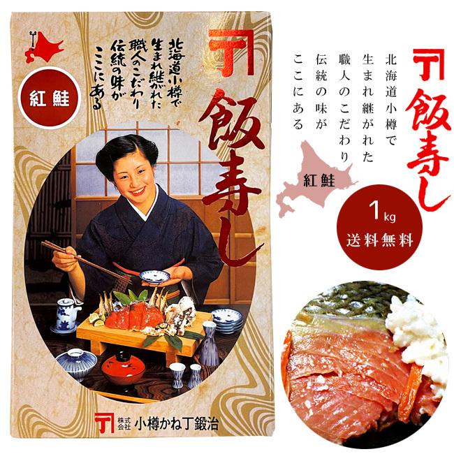 - 紅鮭飯寿司 (紅さけ いずし) 1kg (ベニザケ・べにざけ) 加工地小樽 (郷土料理 醗酵食品)お正月 化粧箱入り【送料無料】