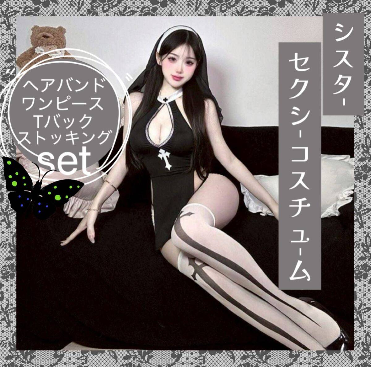 - シスター コスプレ 4点セット マント付 セクシー ランジェリー ハロウィン 仮装