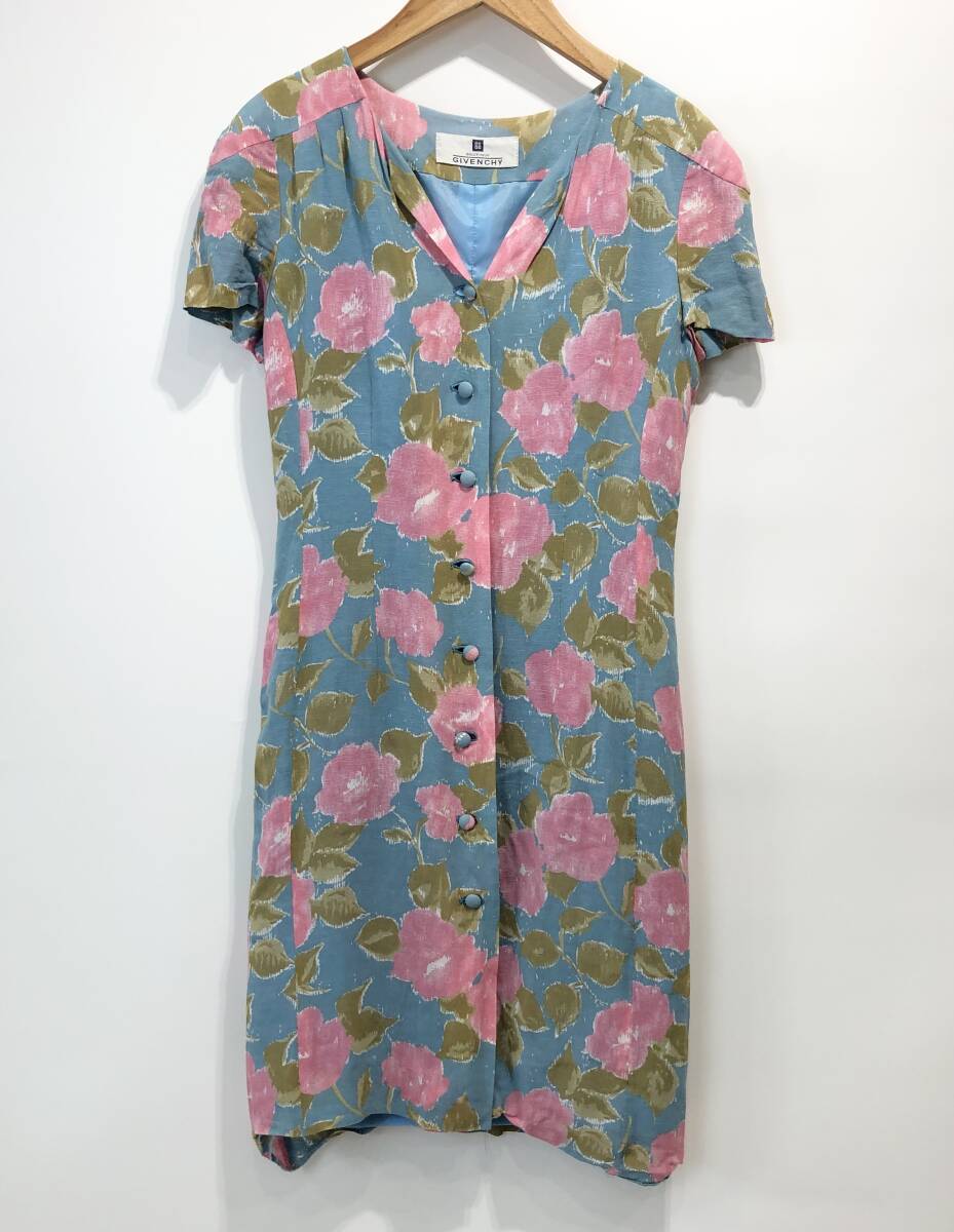 > GIVENCHY BOUTIQUES レーヨン×リネン 花柄 ワンピース ひざ丈 フラワー 372-59239 ジバンシー ブティック 古着 レトロ SIZE:38■0924X