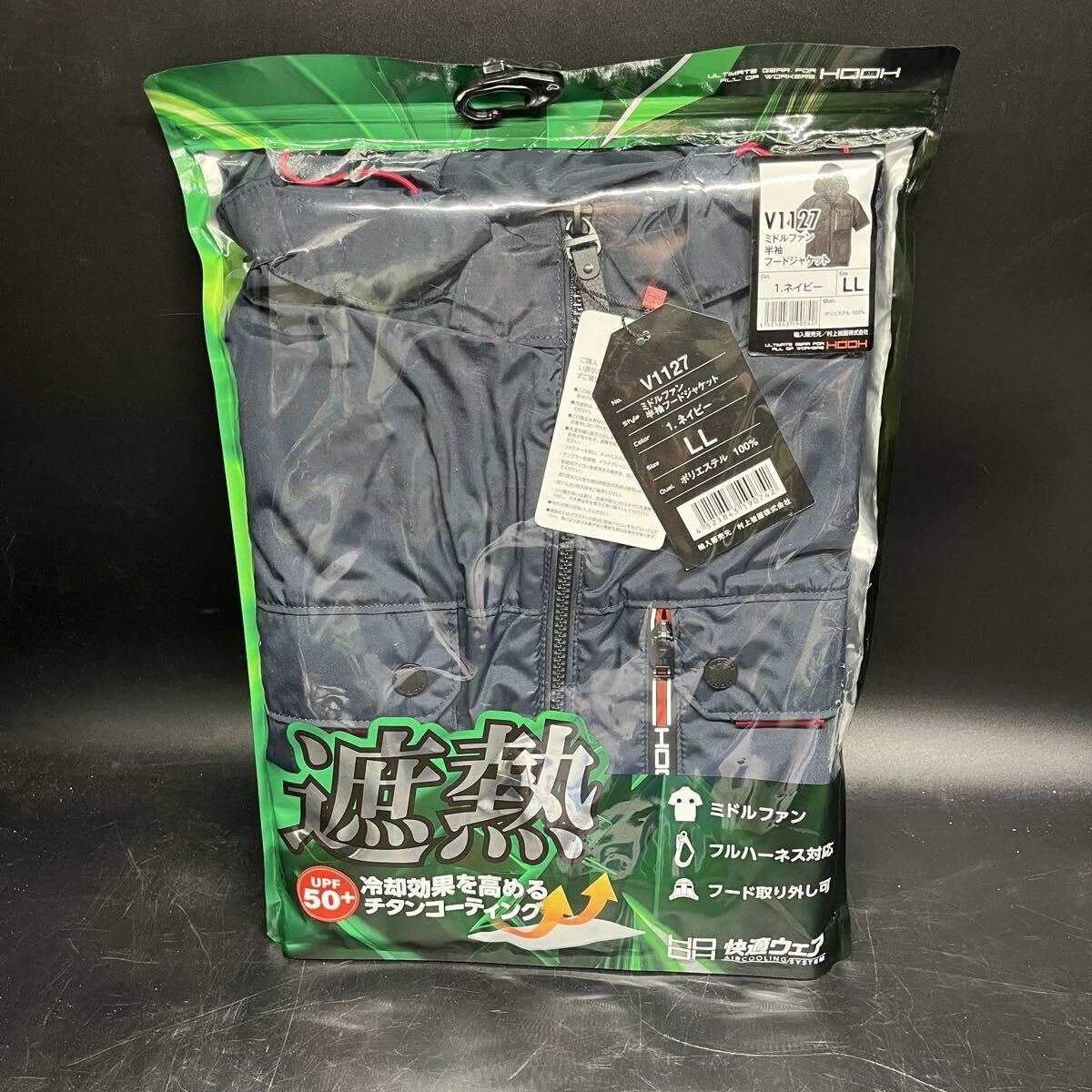 - 1839 HOOH 空調服 V1127 ミドルファン半袖フードジャケット LLサイズ ネイビー